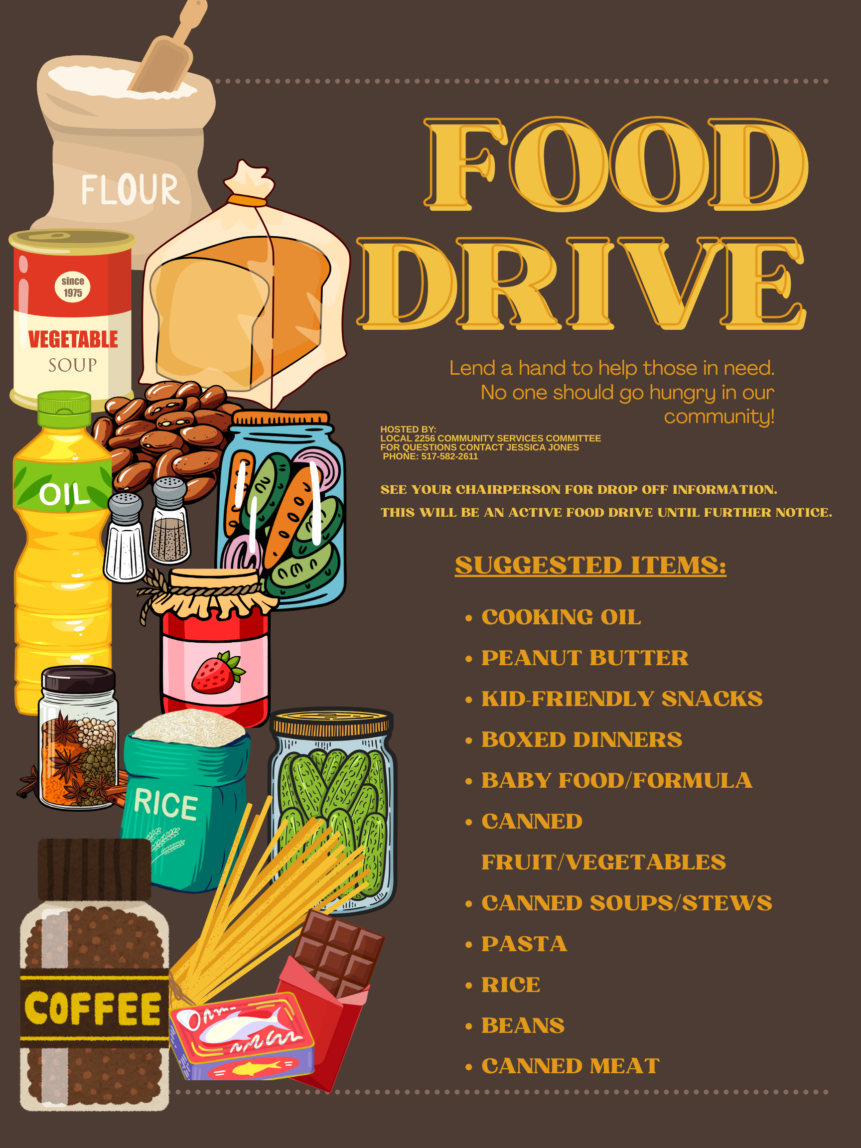 The UAW Local 2256 Community Services Committee is hosting a food drive!