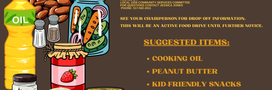 Lend a hand to those in need. UAW Local 2256 is collecting pantry items for our community.